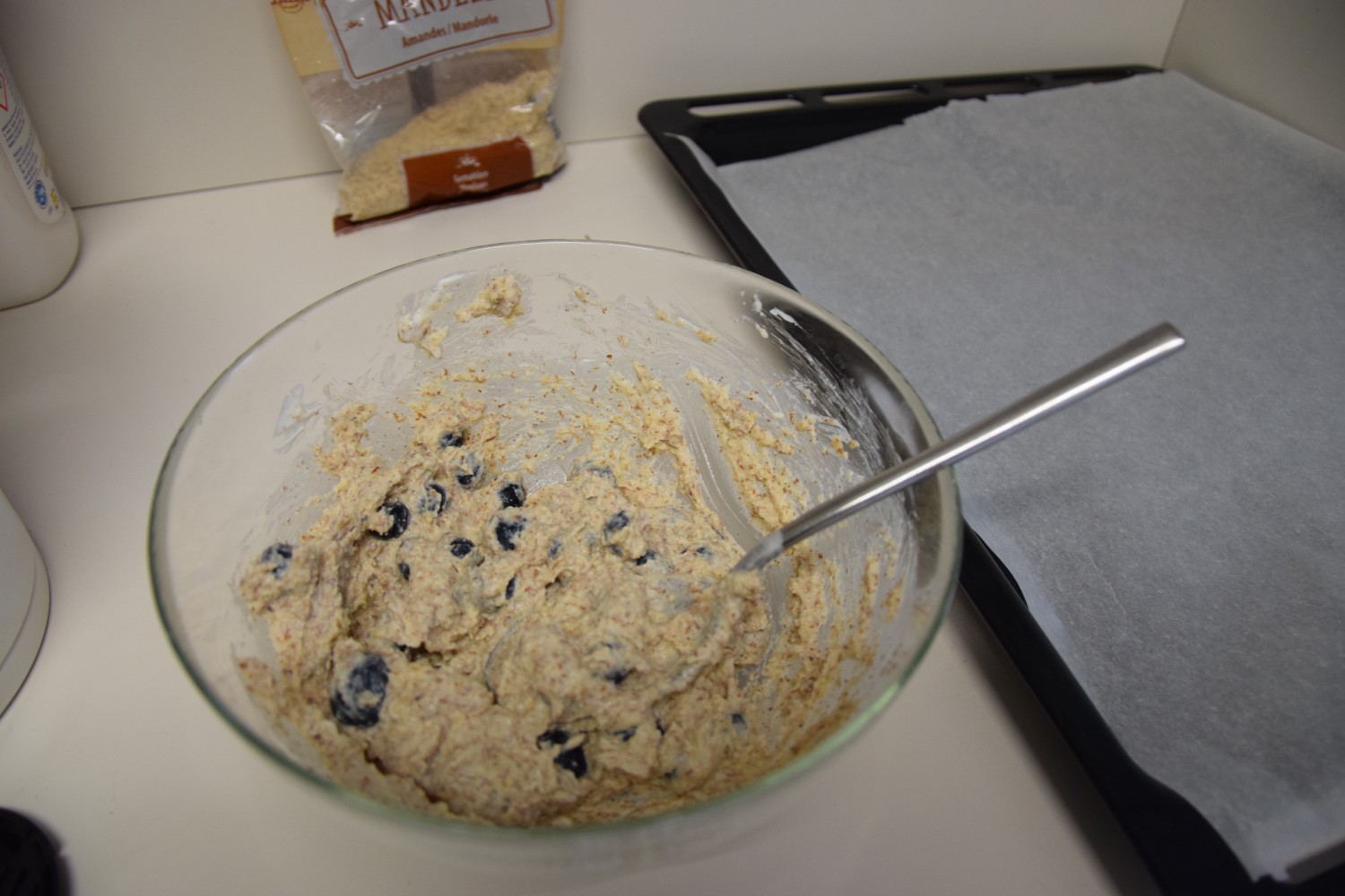 - Add the blueberries to the mixture. Gently mix them in until evenly distributed, being careful not to crush them. Image 3