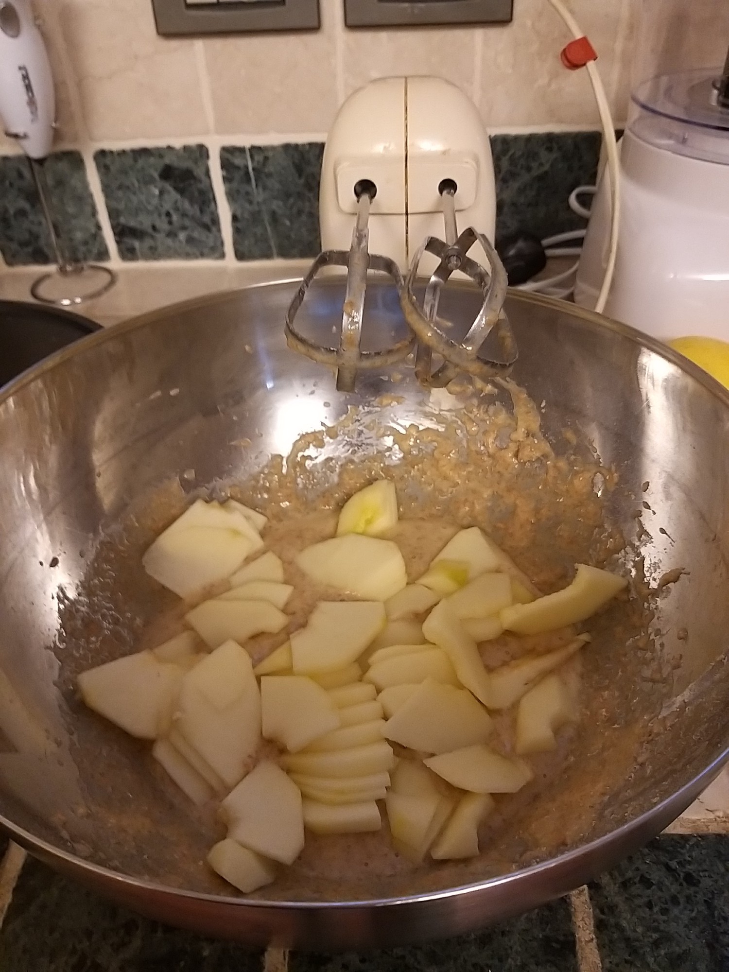 (tap on the pictures to open full screen)Image 1 mixing the apples with the dough mixture
