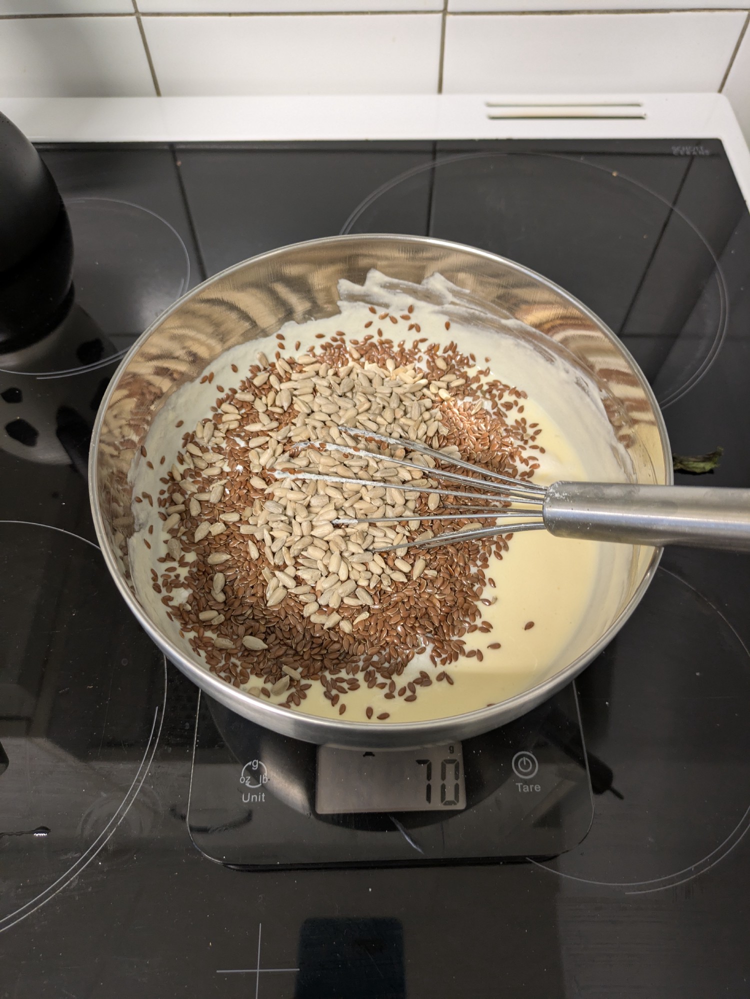 - Add dry ingredients: Stir in the oats, seed mix, nuts, baking powder, and a pinch of salt. Mix until well combined. Image 1,4,5,6