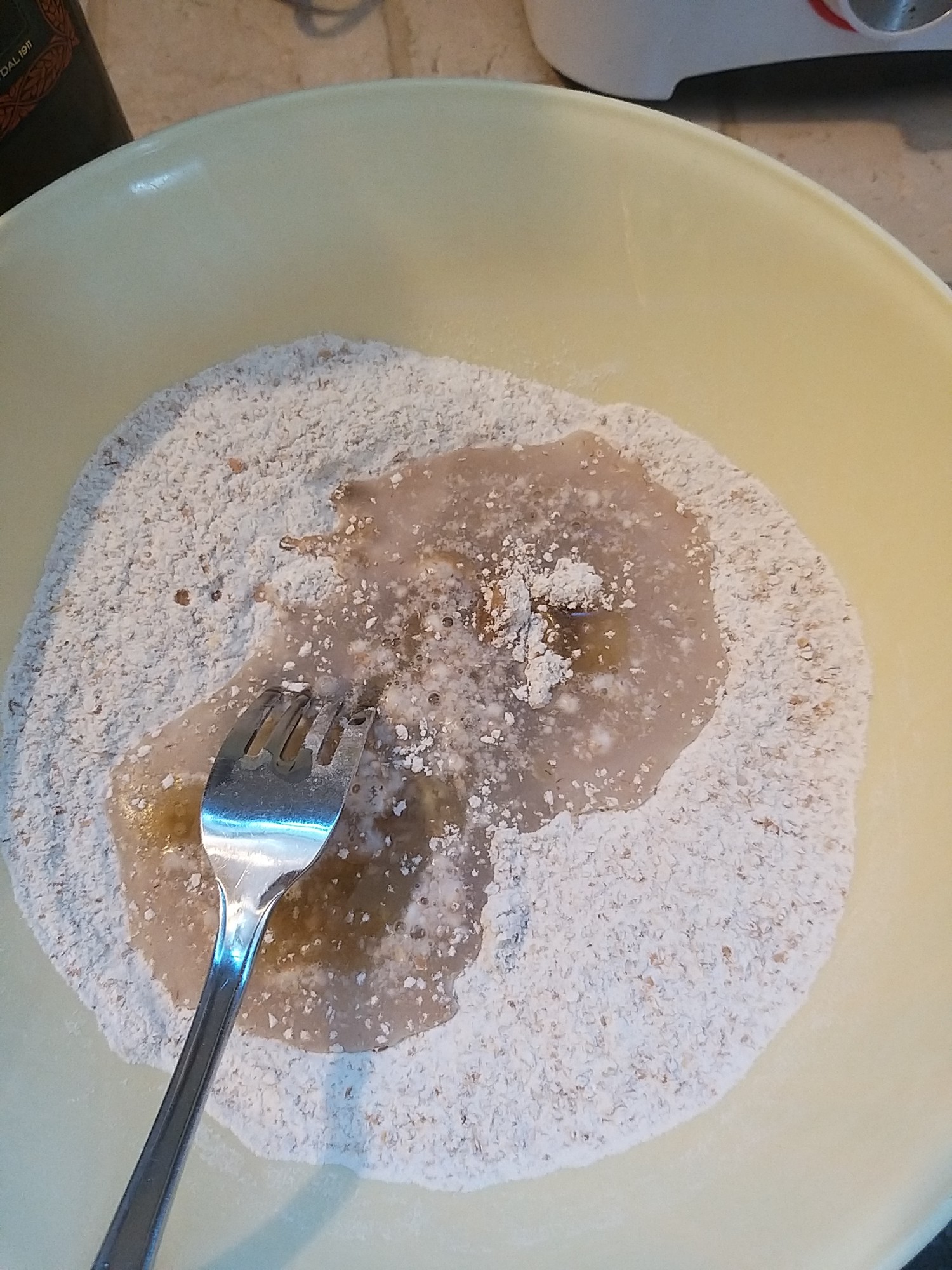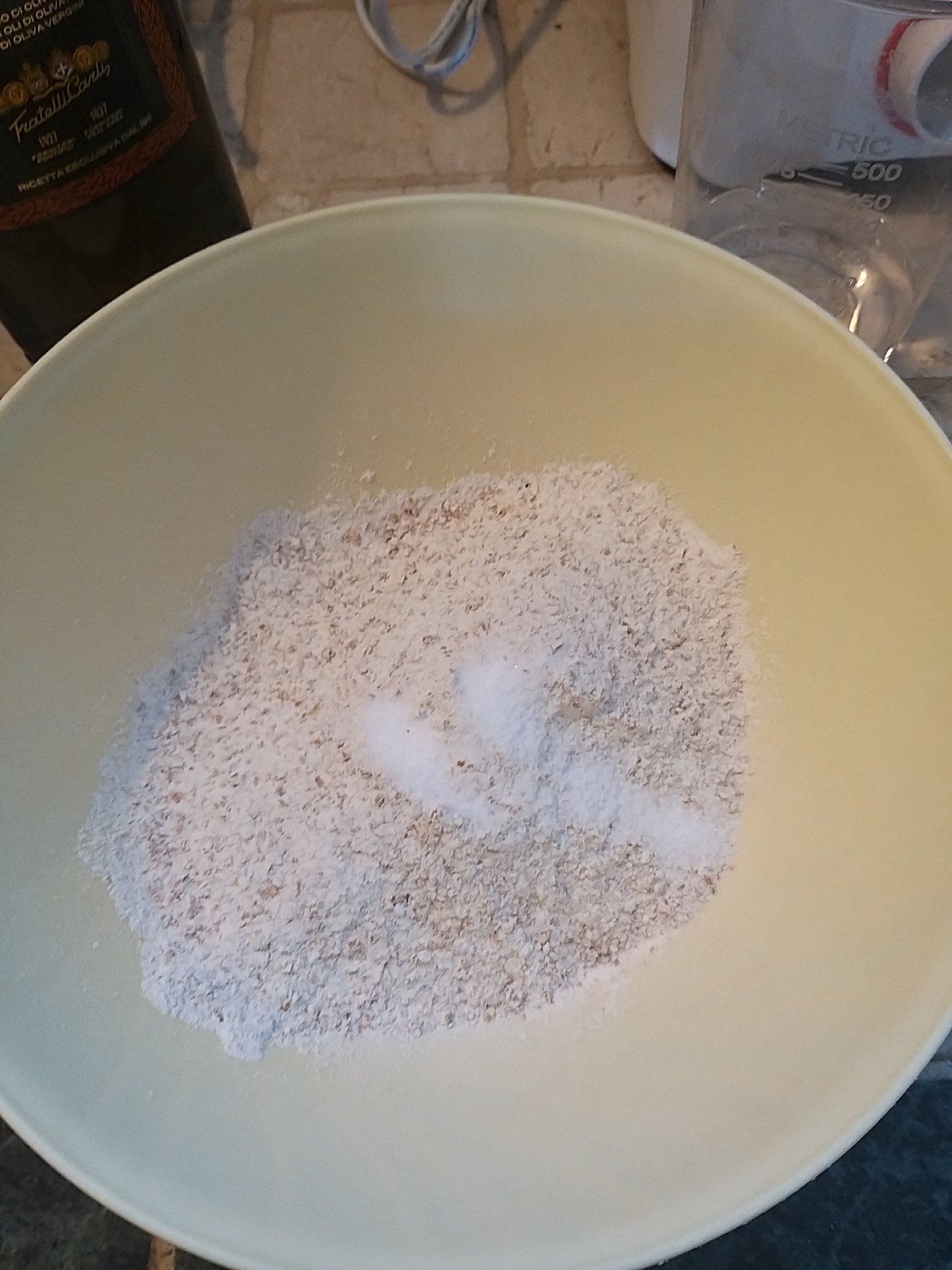 - Start by pouring the flour in a bowl with the salt and mix with a fork for a couple of times Image 1 and Image 2.