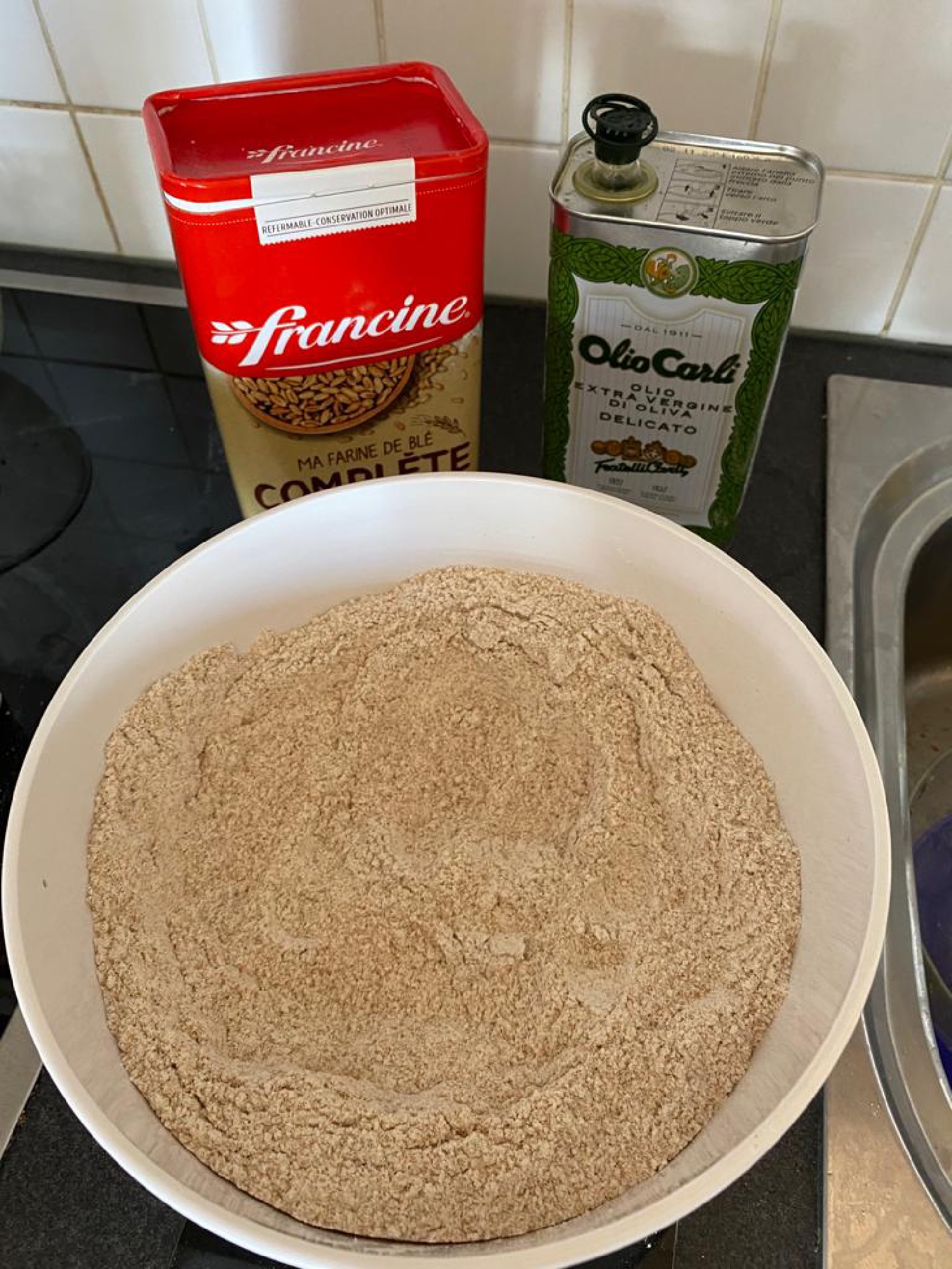 As all Italians, I love pizza. However, I am gluten intolerant. It took me a long time to figure out the best recipe for the dough with wholemeal flour and fresh yeast. This is because white flour behaves differently with the fresh yeast than wholewheat flour. I tried this recipe for 4 people and cooked it in normal oven with a pizza stone.