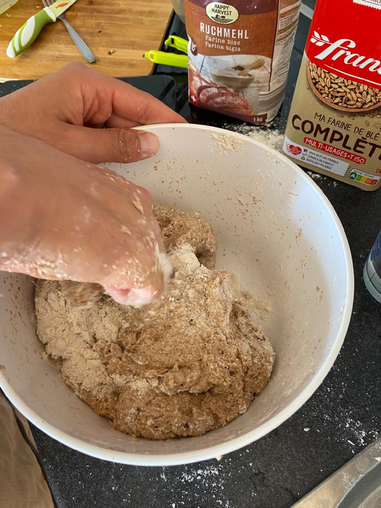- Mix with a fork and then continue with your hands until forming a smooth ball Image 2.